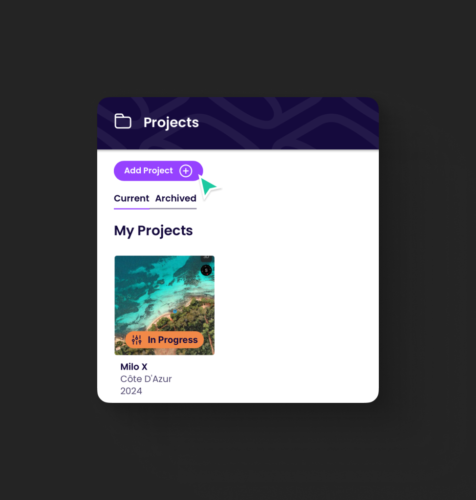 Go to the Projects section in the main menu to access your Projects dashboard.
