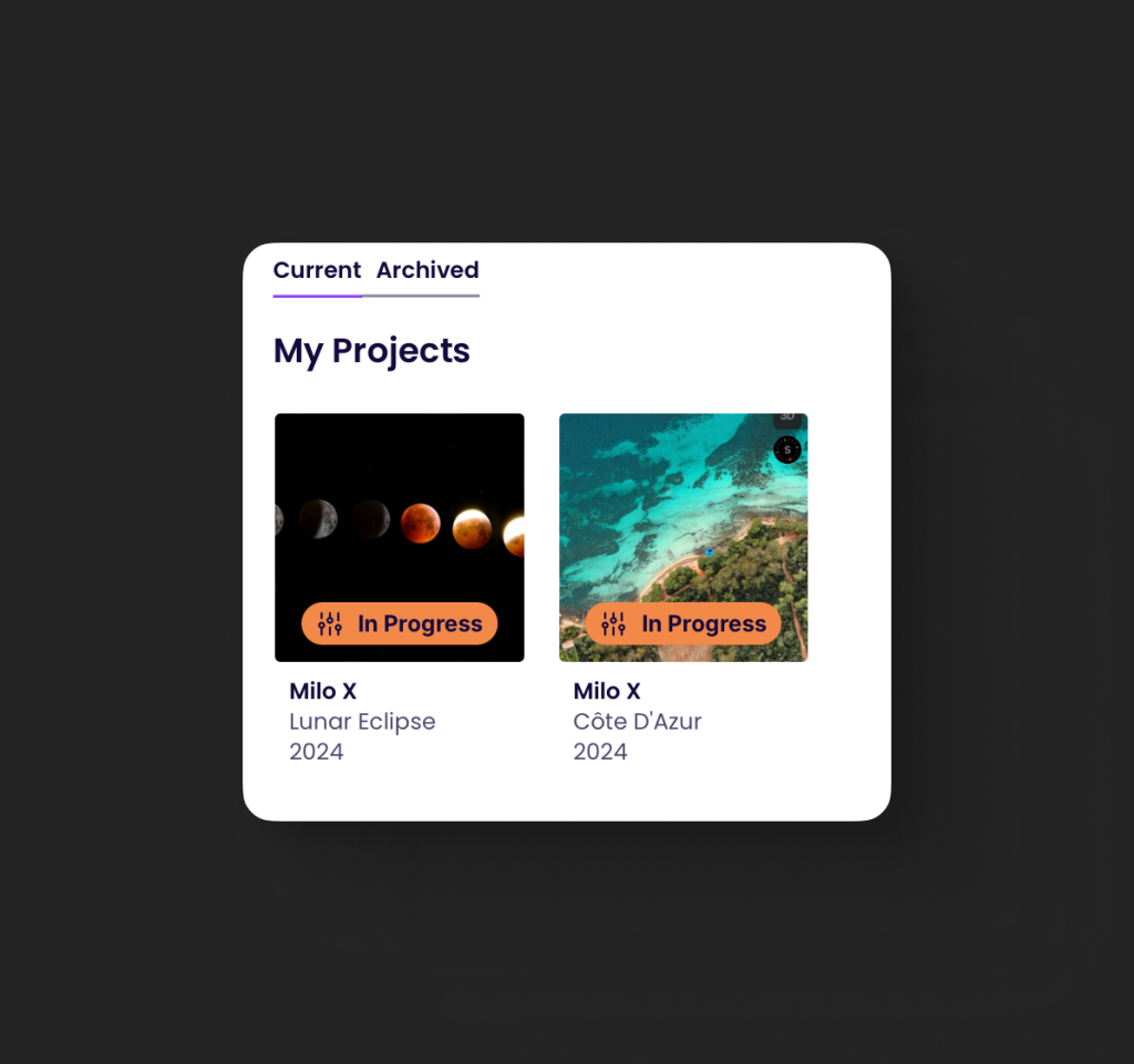 The Projects page is your hub for managing all of your ongoing, past, and future recording Projects, whether they’re singles, mixtapes, EPs, or albums. Here, you can stay up-to-date with all of the Songpacts associated with each Project. The Projects are divided into: